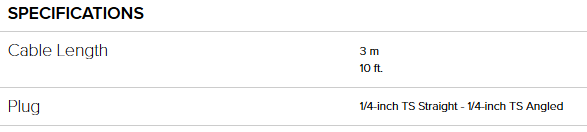 Longitud del cable: 3 metros + conector jack acodado de 6,3 mm y conector jack recto de 6,3 mm