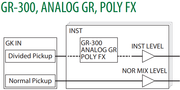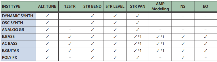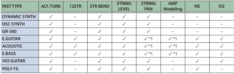 - Nuevas versiones de sintetizadores de guitarra clásicos BOSS/Roland y técnicas de modelado: OSC Synth, Roland GR-300, E.Guitar, E.Bass, Acoustic, VIO Guitar y Poly FX.