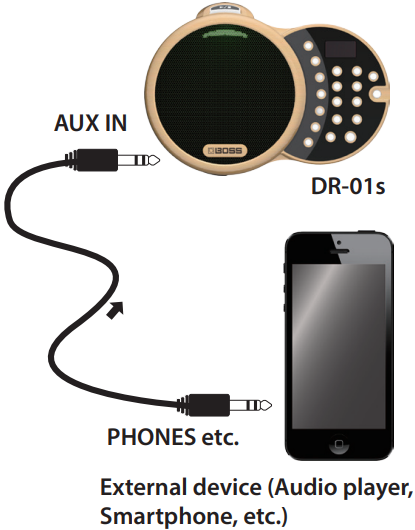 | SALIR | Miniconector estéreo de 3,5 mm | Salida de audio | Envía el sonido desde el DR-01S (y la entrada AUX) a una consola de mezcla, un amplificador externo o un sistema PA. |