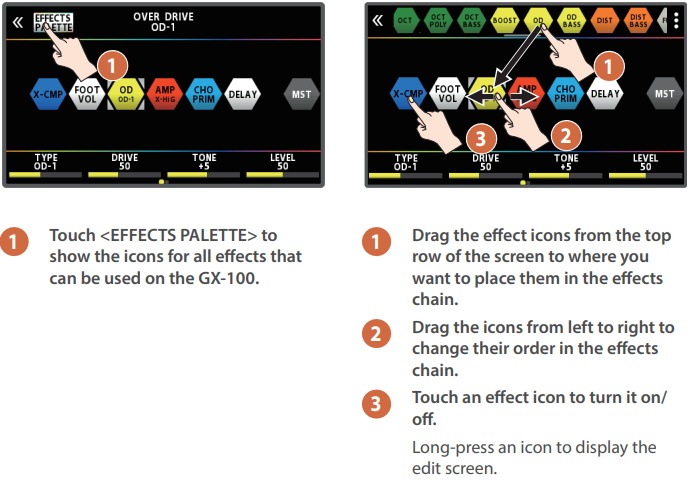 BOSS GX-100 GUITAR EFFECTS Visor a Cores Sensível ao Toque