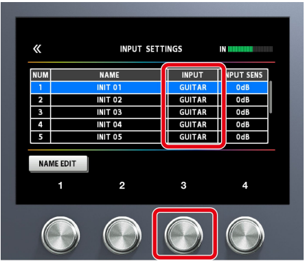 Perilla SELECT, perilla OUTPUT LEVEL, pedal EXP1