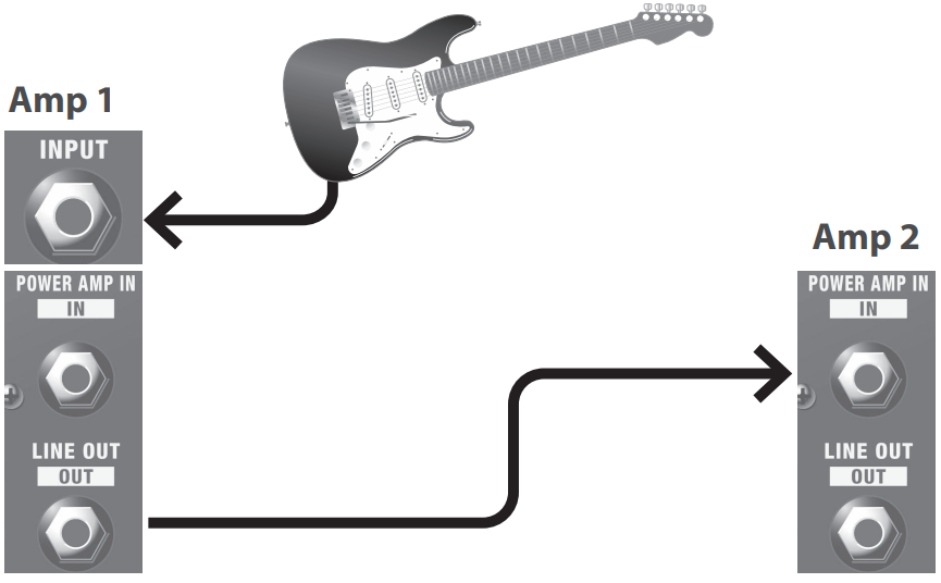 - La conexión LINE OUT le permite conectar una segunda unidad Katana 100 para expansión estéreo.