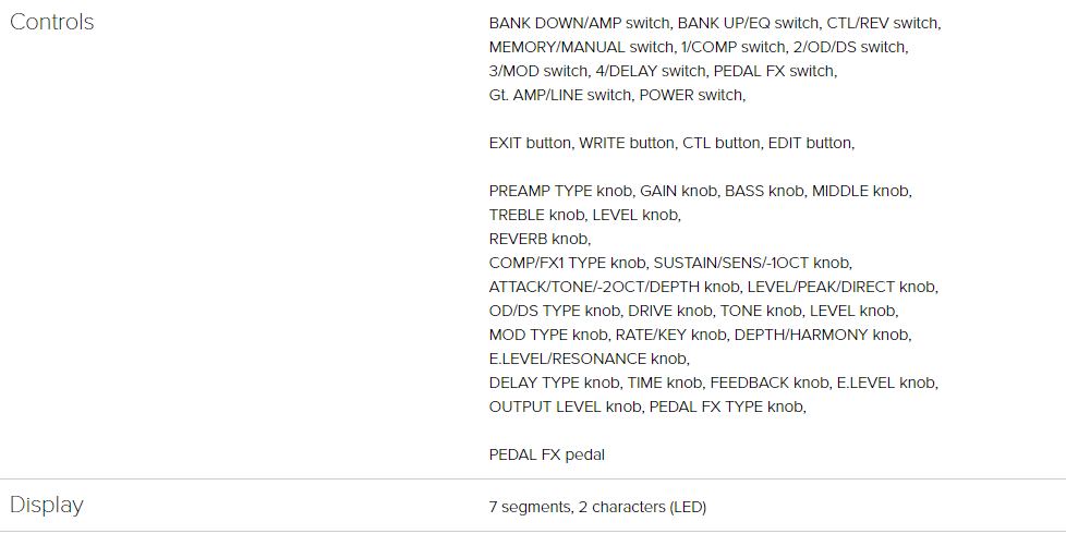 | Tecnología de amplificación | Tecnología BOSS AIRD de primera línea | Calidad del sonido De primera calidad: El ME-90 incorpora modelos de amplificador con tecnología AIRD, heredada del GT-1000. Muchos músicos consideran que el tono y la sensación de los amplificadores de válvulas BOSS (respuesta dinámica) son superiores en su clase. |