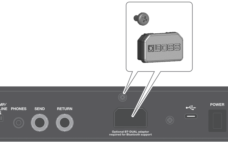 - Puerto USB-C para comunicación con BOSS Tone Studio y grabación/reproducción de audio con software de producción musical.