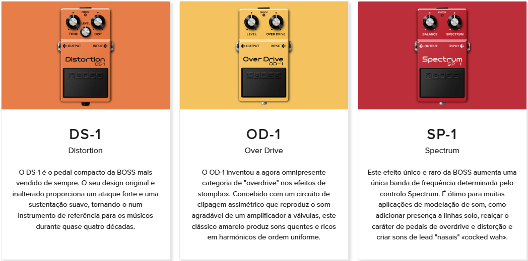| Distorsión DS-1 | Distorsión | El clásico atemporal de BOSS, el pedal de distorsión más vendido de todos los tiempos. |