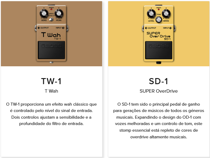 | Flanger BF-2 | Flanger | Uno de los flangers clásicos de BOSS, conocido por su sonido. general (escaneo) y una amplia gama de efectos. |