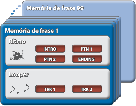| Recuerdos de frases | 99 | 99 (Cada memoria almacena un bucle estéreo y un ritmo) |