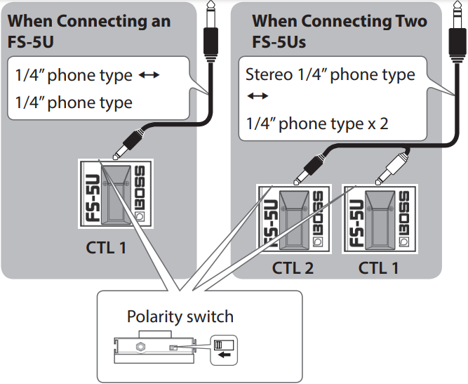 - 1 entrada CTL1,2/EXP en jack estéreo de 6,3 mm para conectar interruptores de pie o pedales de expresión.