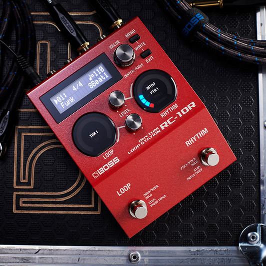 Estación de bucle rítmico BOSS RC-10R Posee características muy específicas que lo diferencian de otros loopers. Su principal ventaja radica en... Integración sofisticada de bucles y ritmoEstas son las principales fortalezas del RC-10R: