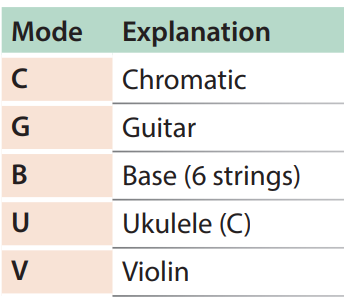 - Modos vocales: CROMÁTICO / GUITARRA / BAJO / Violín / UKULELE