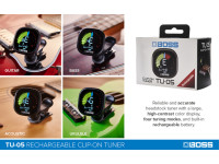 BOSS TU-05 CLIP TUNER Afinador Cromático com Bateria Interna Recarregável