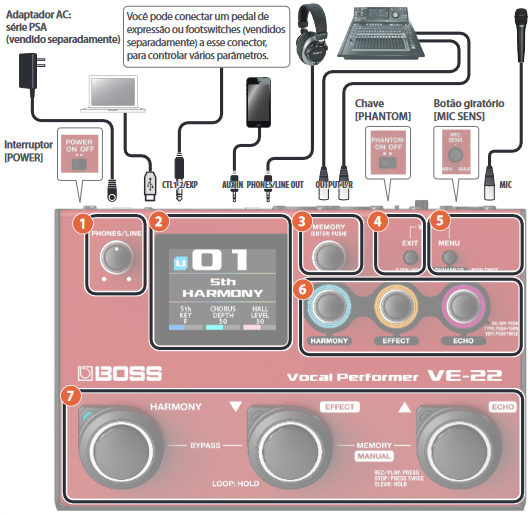 BOSS VE-22 VOCAL FX Multi-efeitos Vocais + COLOR LCD + LOOPER + MIC XLR TOP-SELLER