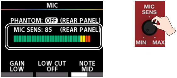 | APORTE | XLR (hembra, balanceada) | Entrada de micrófono principal. | Tiene comida. Alimentación fantasma de +48 V conmutable para micrófonos de condensador. El botón MIC SENS (Sensibilidad) le permite optimizar el nivel de entrada. |