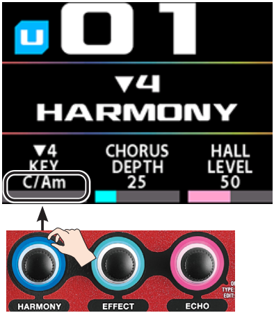 Creando armonías: Utilice las potentes funciones de Armonía y Duplicación (Duplicación de voz) Para crear al instante impresionantes efectos corales con una sola voz, simplemente selecciona el tipo de armonía (terceras, quintas, octavas, etc.) y configura la tonalidad de la canción.