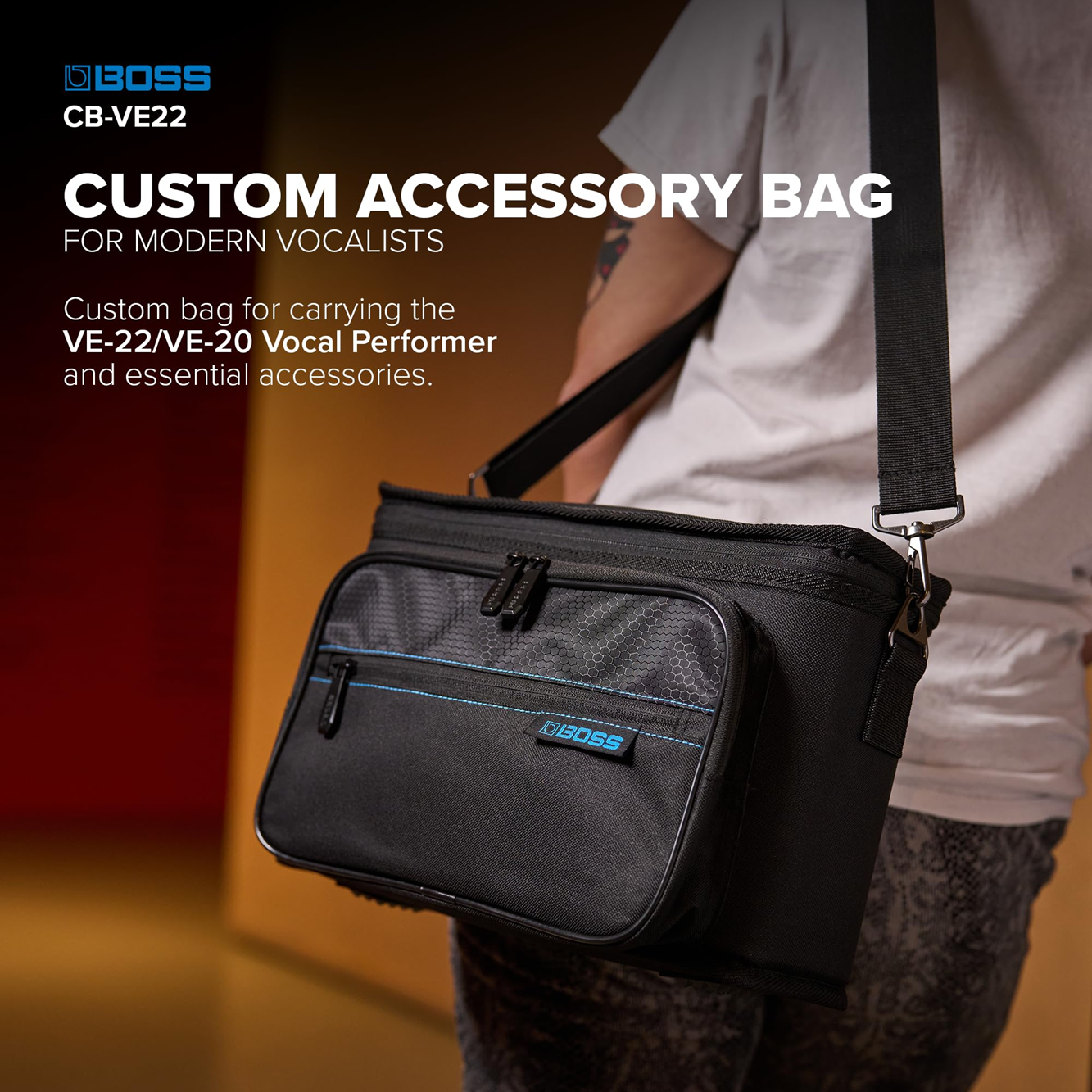- Estuche de transporte BOSS CB-VE22 (se vende por separado) para transportar su BOSS VE-22, un micrófono, cable y accesorios.