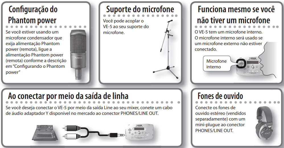 Utilice elBOSS VE-5En una variedad de configuraciones. Es perfecto para artistas en vivo; el accesorio de montaje incluido permite conectarlo a cualquier soporte de micrófono estándar. Algunas de las funciones delBOSS VE-5Incluso se pueden controlar con los pedales BOSS, lo que resulta ideal para usar con manos libres. Al funcionar con pilas, el BOSS VE-5 se convierte en la herramienta ideal para actuaciones en la calle. El BOSS VE-5 también funciona de maravilla en casa o en el estudio como procesador de escritorio.