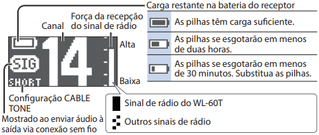 EL duración restante de la batería desde el transmisor (mochila de cuerpo).