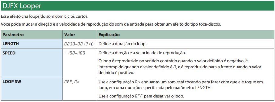 | Actuación momentánea (Entrada con fichaje) | Capacidad de activar efectos momentáneamente manteniendo presionado el botón. [PATRÓN] y el botón para el efecto deseado. | |