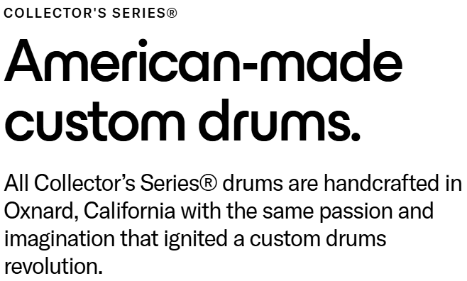 El "Tambor de los Sueños": Esta serie se creó para que cualquier baterista pueda construir su kit ideal, eligiendo entre una amplia gama de maderas, tamaños, acabados y opciones de herrajes. Prácticamente no hay dos kits de la Serie Coleccionista completamente idénticos.
