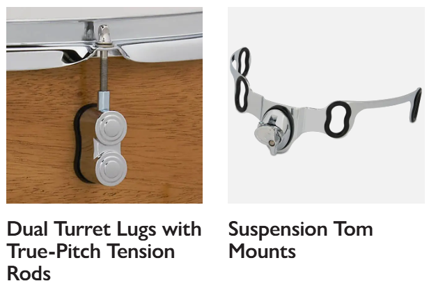 La caja CONCEPT de 10 capas incluye de serie un lanzador MAG de DW DRUMS, además de cuerdas cromadas, bobinas de acero al carbono y tapas cromadas. Estas baterías están equipadas con aros de contrapeso graduados, clavijas de afinación dobles y sistema DW DRUMS TRUE-PITCH con un 20 % más de rosca para un mejor control de la afinación. Cada batería está equipada con parches Remo para garantizar que esté lista para tocar desde el primer momento. Este paquete de 7 cascos PDP está diseñado para estadios con toms de 7x8", 8x10" y 9x12", toms de piso de 12x14" y 14x16", una caja de 5,5x14" y un bombo de 18x22". Los platillos y el hardware se venden por separado.