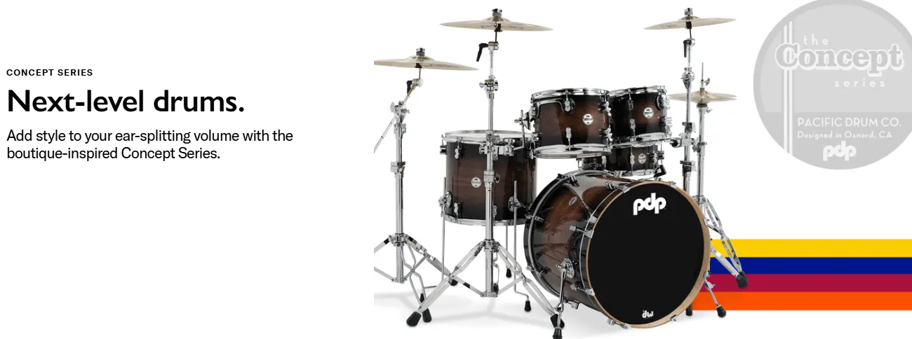 Desde sus inicios, PDP ha sido adoptado por una amplia gama de músicos, desde estudiantes y educadores hasta prestigiosas universidades, instituciones musicales, profesionales y bateristas en activo de todo el mundo. Con el objetivo de poner instrumentos elegantes y con un sonido excepcional al alcance de todos, la línea se ha ampliado con los años para incluir las galardonadas baterías de la serie Concept y el hardware y accesorios modulares de la serie Concept.