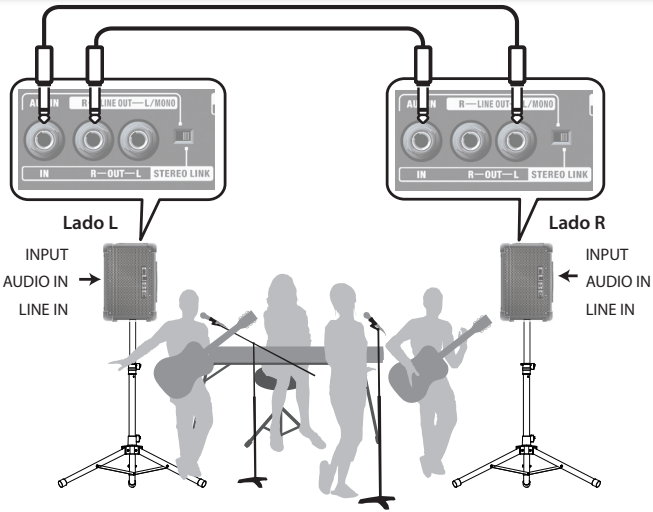 - La conexión STEREO LINK le permite conectar un segundo altavoz Roland CUBE STREET EX para obtener una cobertura de sonido más completa y potente.