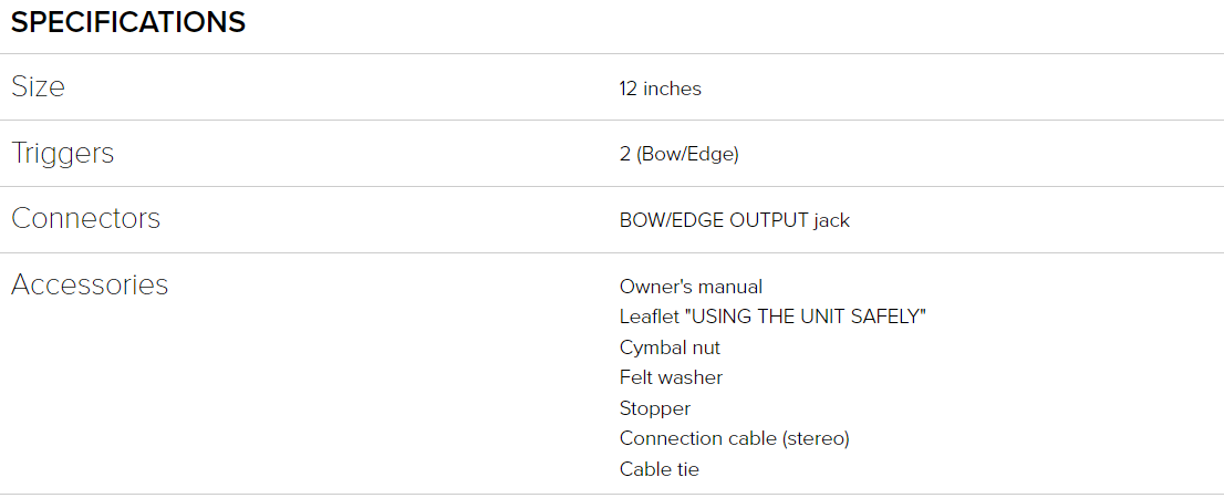 - Platillo crash de perfil delgado Roland CY-12C-T para Roland V-Drums
