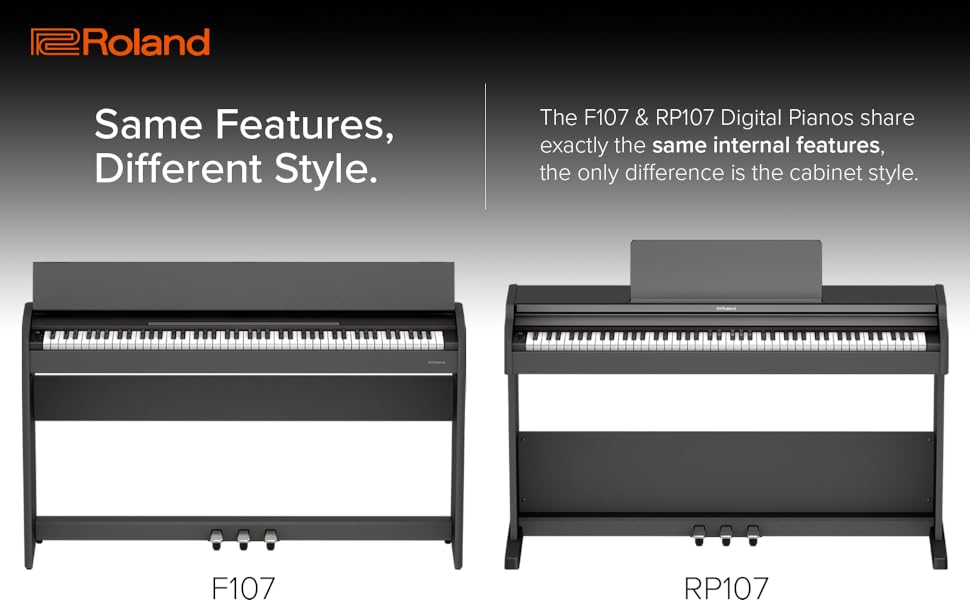 Expresión profunda: F107 utiliza el aclamado motor de sonido Piano sobrenatural De Roland, que no se basa únicamente en muestras simples, sino que utiliza un modelado sofisticado para reproducir los matices complejos de un piano de cola acústico.