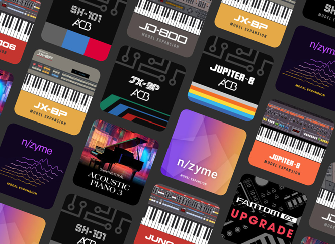 - Expansiones para los modelos n/zyme, JD-800, JUNO-106, JUPITER-8, JX-8P y SH-101