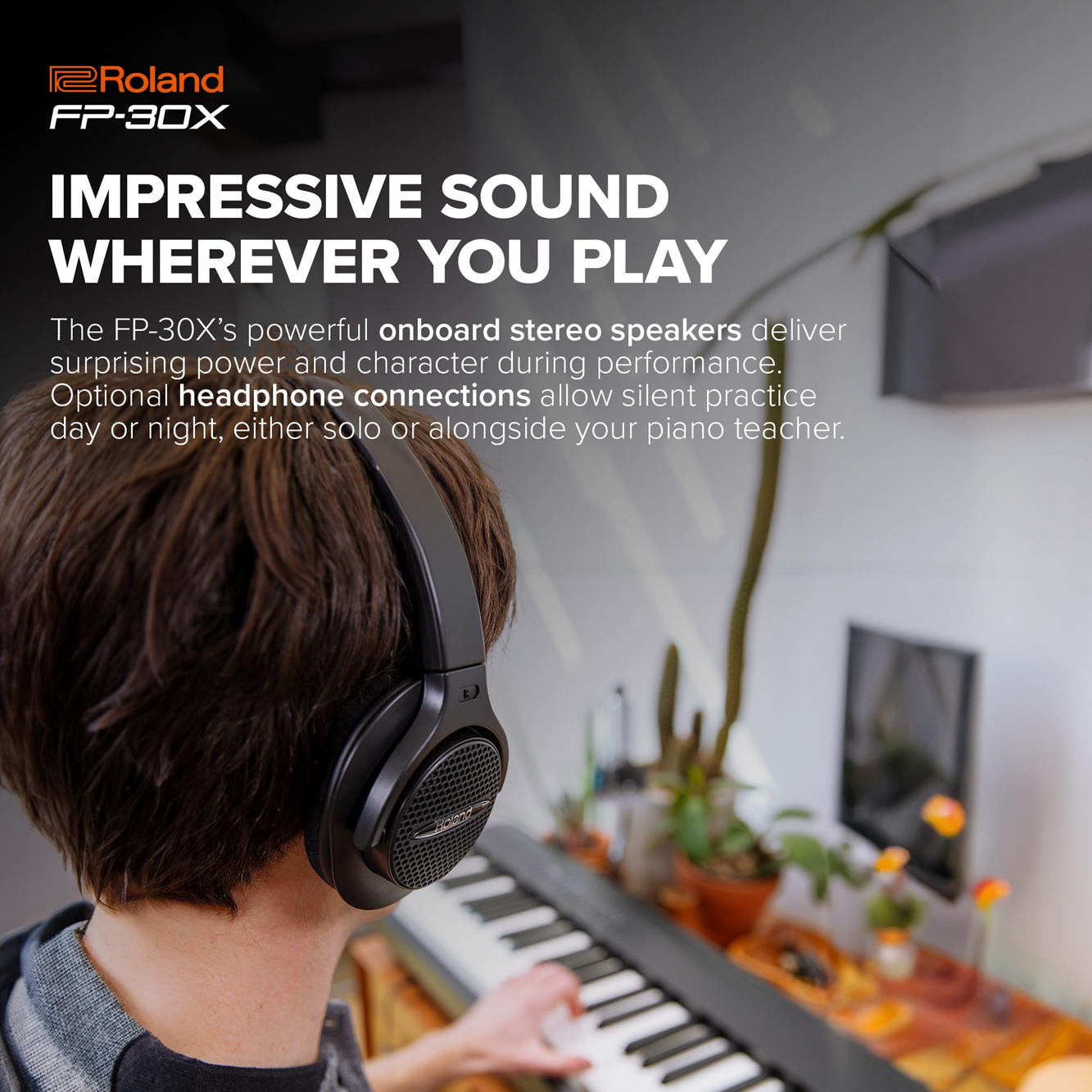 - Piano portátil Roland FP-30X BK negro con puerto USB y Bluetooth