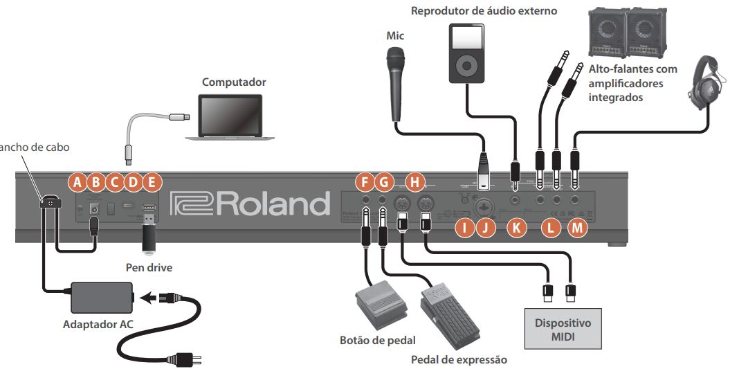 Puerto USB COMPUTER: USB Tipo-C(R) (compatible con audio y MIDI/controlador Roland para audio y MIDI)